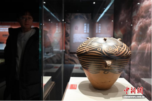 1月8日,图为游客在甘肃省博物馆参观“从黄河到天山——史前彩陶的西渐之路”文物大展。