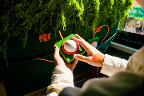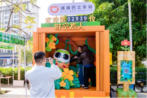除此之外,雨林之心号设置了多个情景互动环节,希望打造全程沉浸式互动体验。用户上车前可前往“时空旅人”主题限定车站,与“时空使者”滴滴熊猫仔仔击掌,开启这段梦幻旅程;旅途过程中,用户可以通过按动前排座椅靠背的游戏按钮,与滴滴熊猫仔仔一起参与主题游戏;在抵达目的地时,将收获一份主题大巴准备的热带雨林专属礼物。