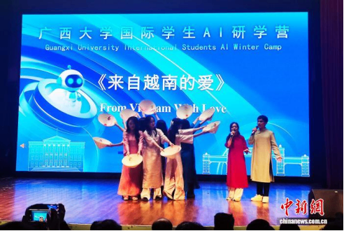 在研学营闭营仪式上,学子们表演了《扇》《来自越南的爱》《行走于灿烂天空下》《我会等》等节目。广西大学国际合作与交流处处长廖文丹寄语学子做持续的学习者,在各自的学习与职业道路上不断追求创新与突破,成为推动智能时代发展的青年力量;做文化的传播者,讲述真实、生动的中国故事,促进各国之间的理解与尊重,搭建心灵相通的桥梁。